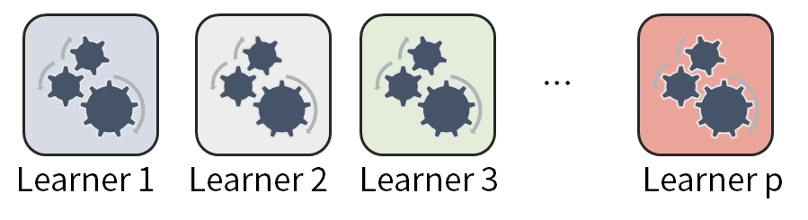 - 다양한 learner를 만들면 전체의 모델의 성능이 증가할 수 있습니다.