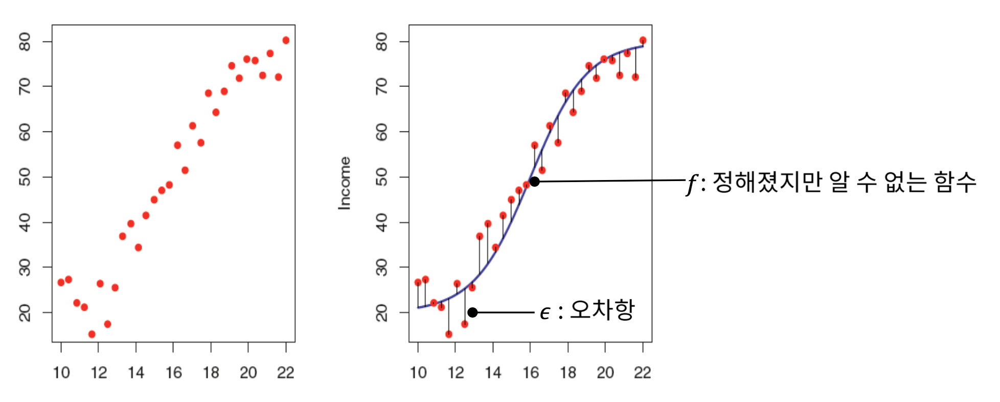 주어진 데이터를 통해서 입력변수(X)와 출력변수(Y)간의 관계를 만드는 함수 f를 만드는 것