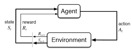 - Agent가 Environment에서 action을 취하고 보상을 받고 이 보상이 최대가 되도록 최적의 action을 취하는 방법을 배움