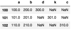 b = pd.Series([101, 201, 301], ['a', 'b', 'k'])