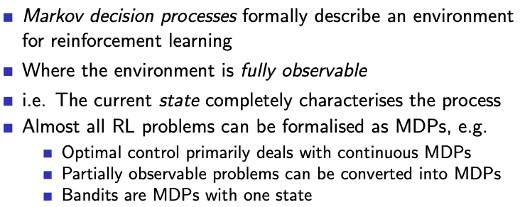 - 거의 모든 강화학습 문제는 MDP문제로 정의할 수 있습니다.