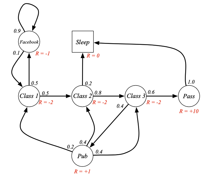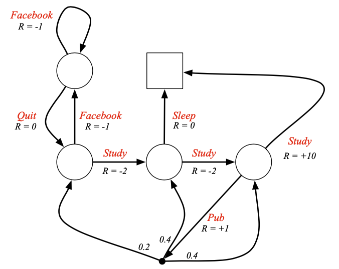MRP에서는 State마다 Reward가 주어졌지만 MDP는 Action마다 Reward가 주어집니다.