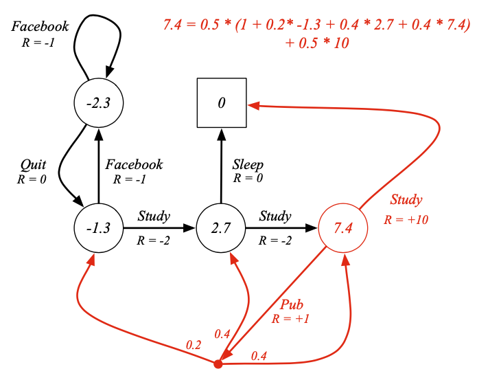 - 다음 State에 대한 할인된 값인 $\gamma v(S_{t+1})$