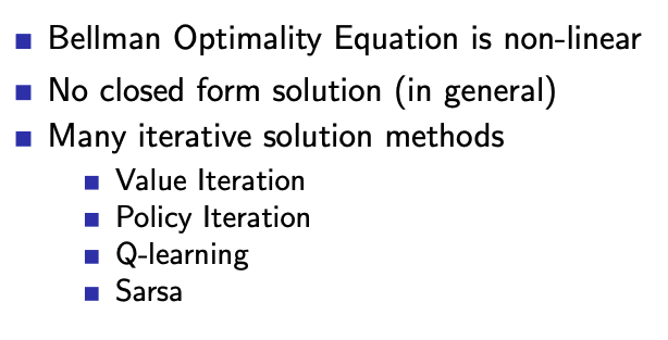 - 벨만 최적 방정식은 선형적이지 않습니다.