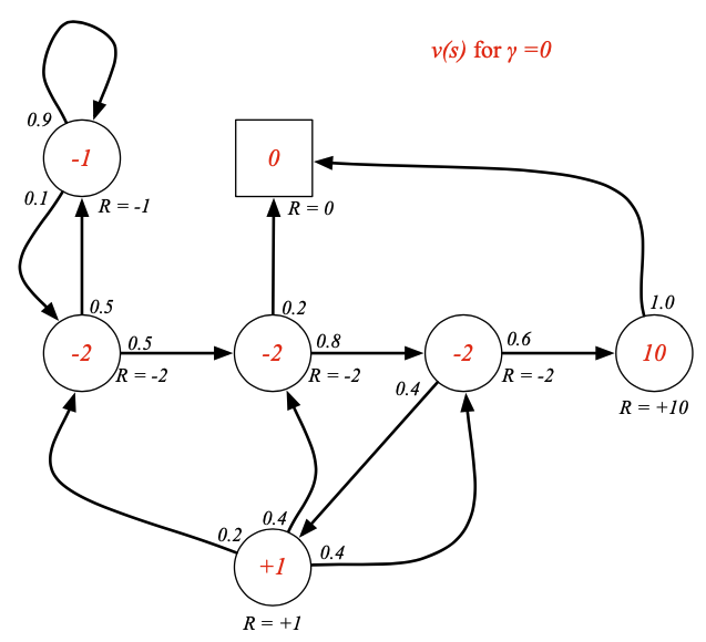 - $\gamma$가 0에 가까워 질수록 "근시" 평가를 하게 됩니다. (즉, 가까운 보상에 대한 것만 평가함)