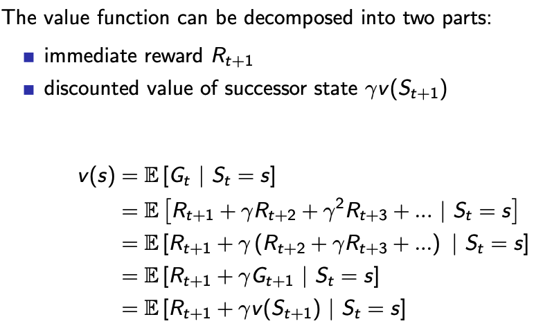 - 가치함수는 두개의 부분으로 분해할 수 있습니다.