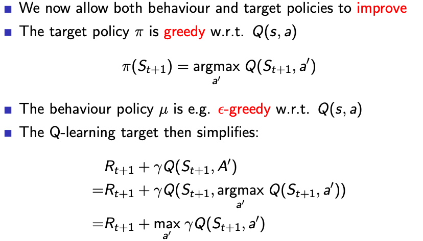 $$\pi(s^{'}) = \underset{a \in A}{argmax} Q(s,a)$$