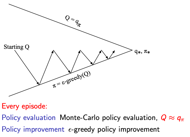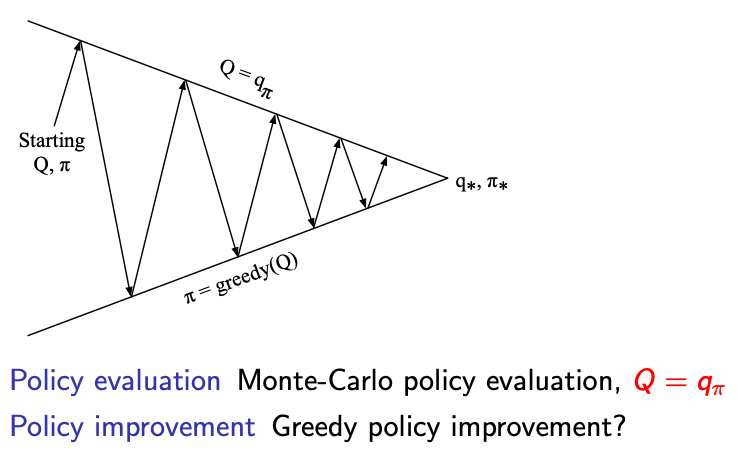 - 정책평가에서는 MC의 평가, $Q = q_{\pi}$