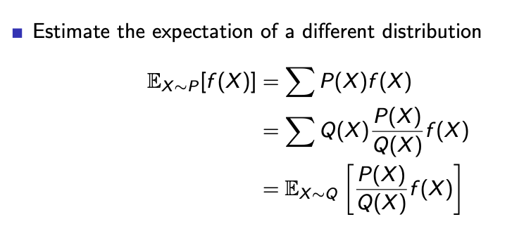 - Importance Sampling은 다른 분포에 대한 기대값을 추정하는 방식입니다.
