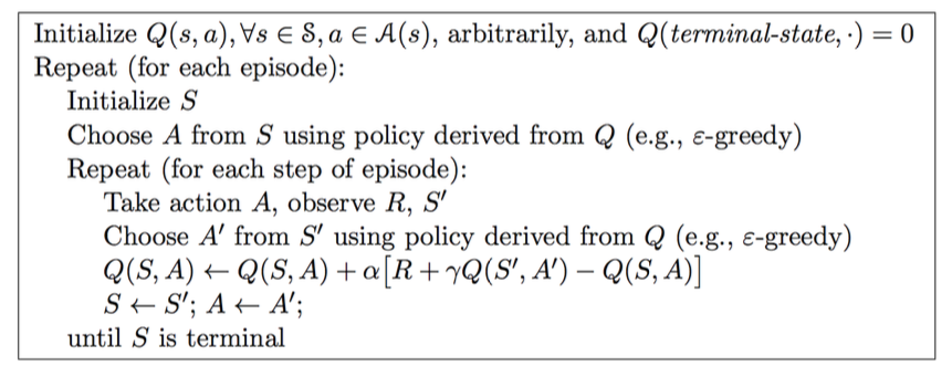 이 알고리즘은 Sarsa 알고리즘이라고 불립니다.