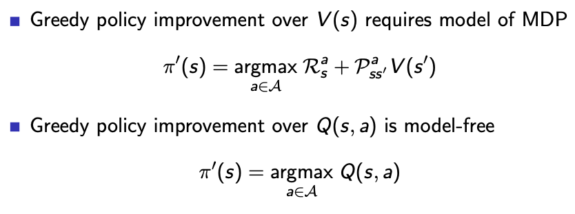 - MDP의 모델을 알아야 Greedy 정책 개선을 통해 V(s)를 알 수 있다.
