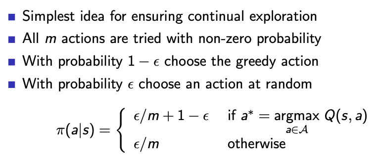 - 모든 State action 페어들이 무한히 반복되어야 합니다. (그래야 Explore를 충분히 할 수 있음) Exploration에 관한 것