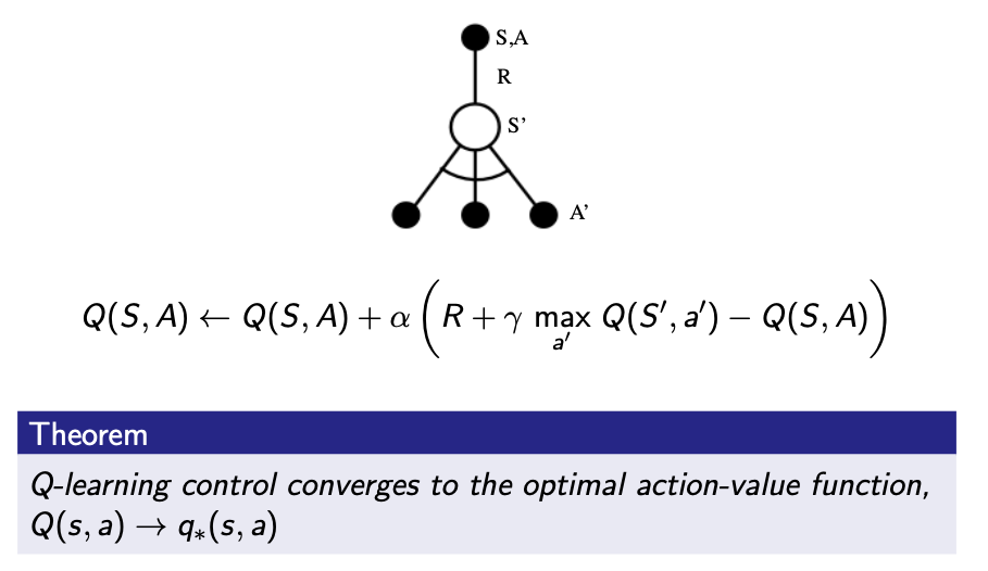- Q-learning control은 최적의 행동가치함수, $Q(s,a) \rightarrow q_{*}(s,a)$에 수렴합니다.