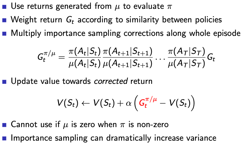 - $\pi$를 평가하기 위해 $\mu$에서 생성 된 반환을 사용합니다.