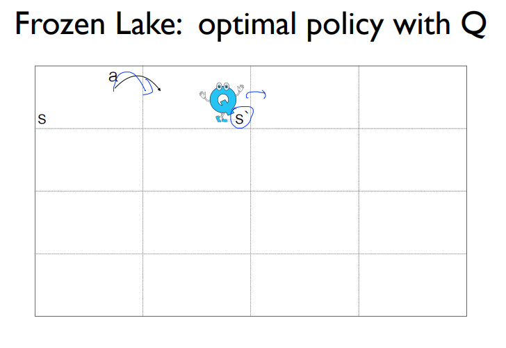 $s$에서 시작한다고 하면 Q함수를 통해 값을 최대화하는 Policy를 찾아 이동합니다.