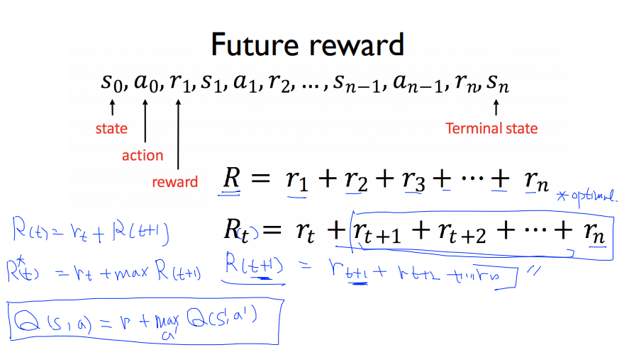 다음 State에서 Action을 했을 경우 Action값을 최대화하는 값에 Reward를 더하면 전 State와 Action이 나옵니다.