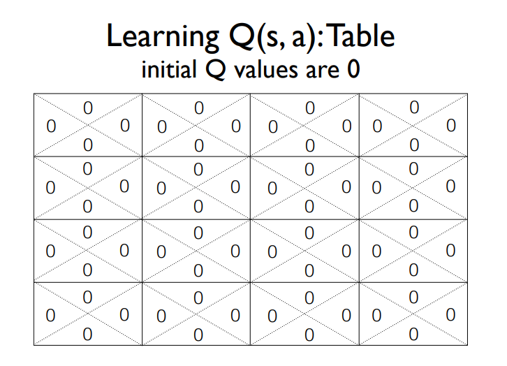 Q값을 모르기 때문에 0으로 전부 초기화를 시켜버립니다.