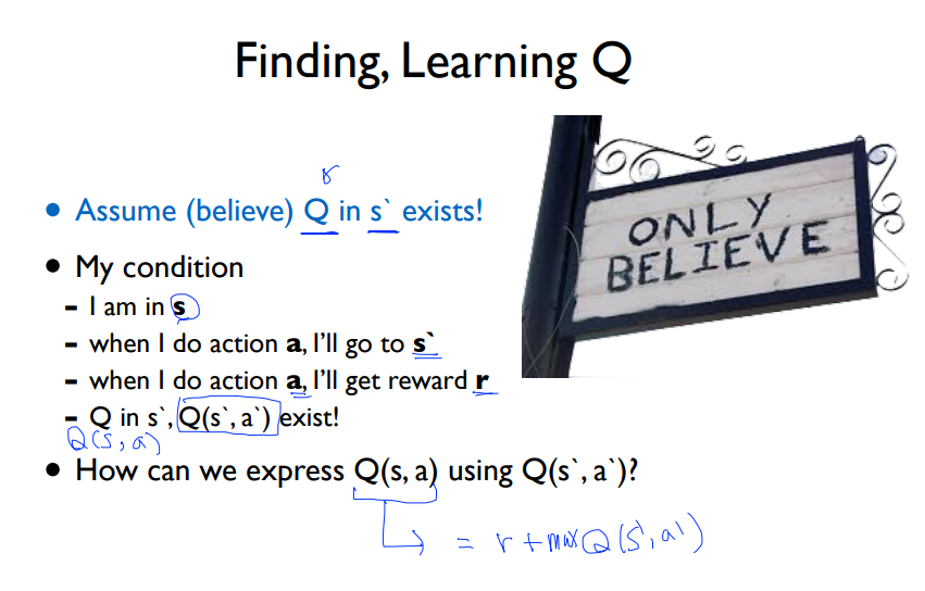 위의 그림처럼 $argmax$값을 찾은 후 $s^{'}$으로 이동했을 때 다음부터 계속 Optimal Policy Q함수를 이용해 이동해 나갑니다.