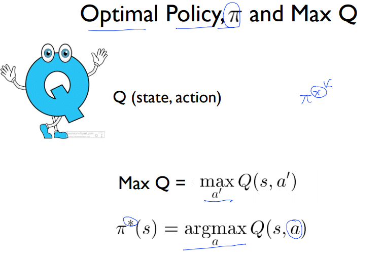 우리는 State $s$에서 $a^{'}$의 행동을 했을때 $a^{'}$값이 최대가 되도록하는 것이 $Max Q$입니다.