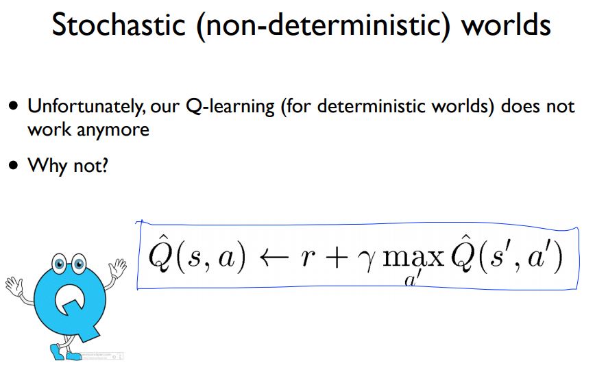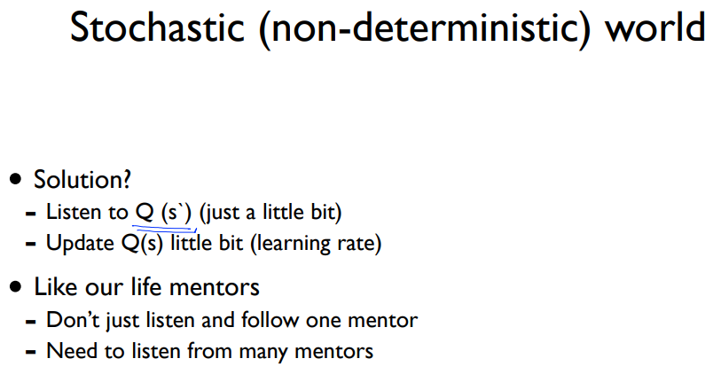 우리는 이 알고리즘을 nondeterministic환경 즉 Stochastic한 환경에서도 사용이 가능합니다.