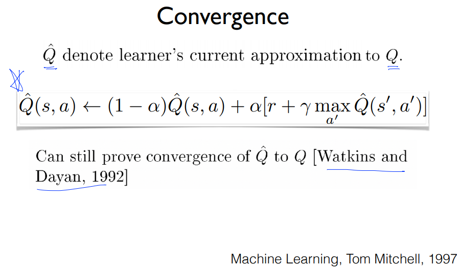 - 많이 반복(infinity iteration)을 하게 되면 $\hat{Q}$값은 $Q$값에 수렴하게 됩니다.