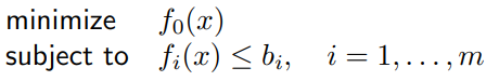 - $f_{i} : R^{n} \rightarrow R, i = 1,...,m$ : constraint function (제약 함수)
